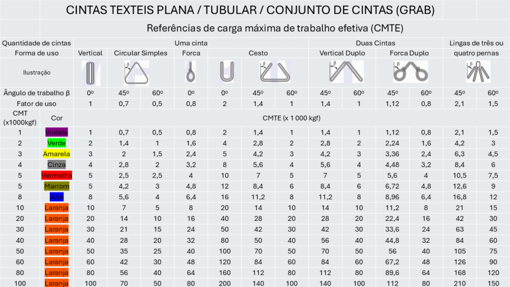 Treinamento Cintas Têxteis Plana (SLING) / Tubular / Conjunto de Cintas (GRAB)